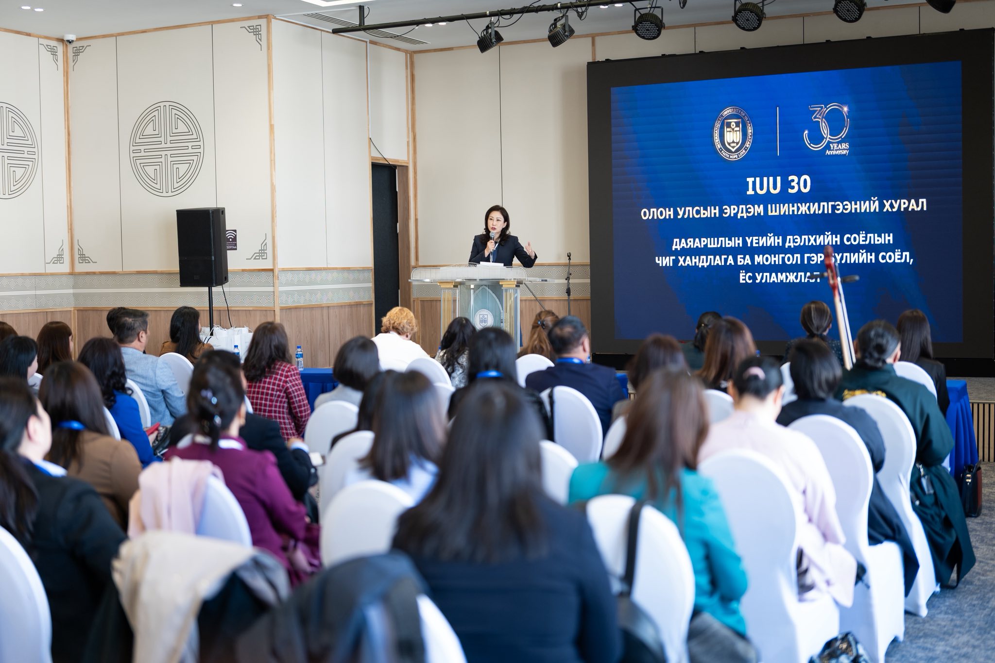ОУУБИС-ийн 30 жилийн ойн хүрээнд “IUU-30 ЖИЛ Олон Улсын Эрдэм шинжилгээний хурал”-ийг 2025-5-14 өдөр 3 салбар хуралдаантайгаар нийт 5 орны эрдэмтэн судлаачдын баг 50 гаруй илтгэлийг хэлэлцэн хуралдлаа. ОУ-ын эрдэм шинжилгээний хүрээнд Хүндэтгэлийн хуралдаан, Тогтвортой хөгжил 2050: ХИЙМЭЛ ОЮУН ба ЭРХ ЗҮЙН ТОГТОЛЦОО сэдэвт хууль зүйн салбарын, Тогтвортой ирээдүйн төлөө сувилагч нарыг хүчирхэгжүүлэх нь: Манлайлал, Инновац ба Дэлхийн чиг хандлага сэдэвт сувилахуйн салбарын, Эдийн засаг, бизнесийн орчин үеийн тулгамдаж буй асуудал, чиг хандлага сэдэвт эдийн засаг, бизнесийн салбарын, Даяаршлын үеийн дэлхийн соёлын чиг хандлага ба Монгол гэр бүлийн соёл, ёс уламжлал сэдэвт гэр бүл, нийгмийн ажлын салбарын салбар хуралдааныг тус тус зохион байгуулж хуралдаанд нийт 300 гаруй судлаачид оролцлоо.