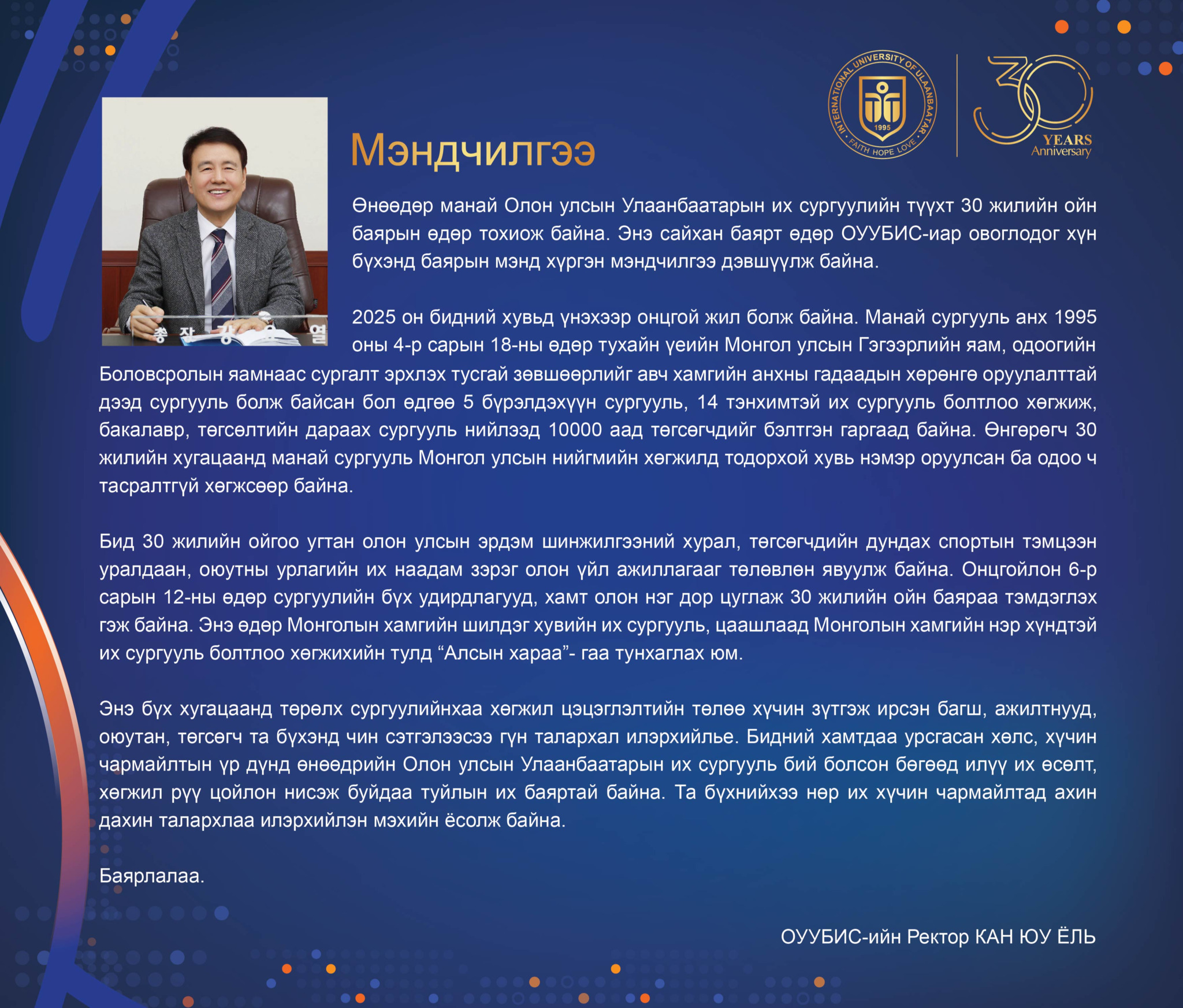 ОУУБИС-ийн хамт олонд түүхт 30 жилийн ойн баярын мэндийг дэвшүүлье.