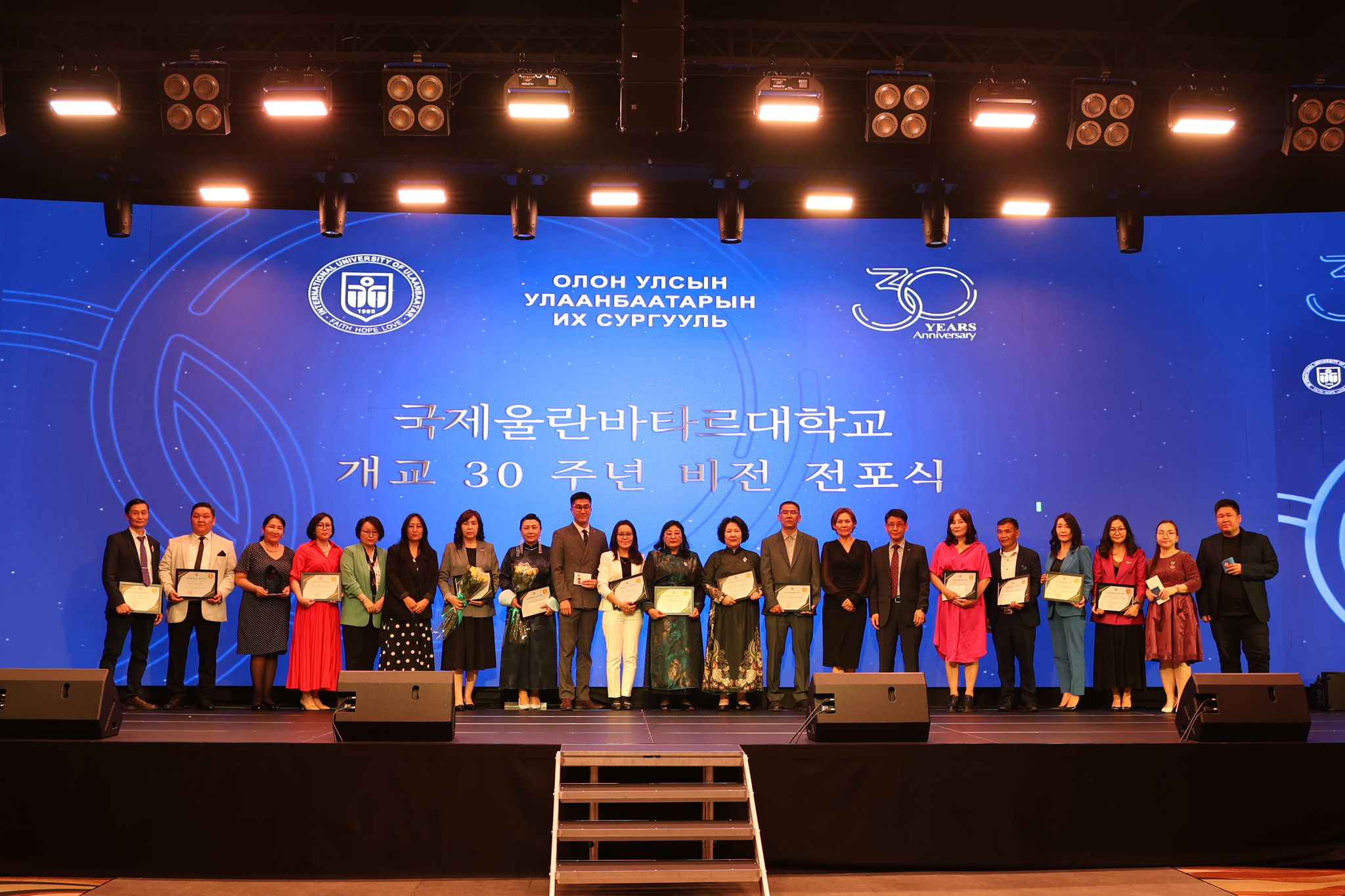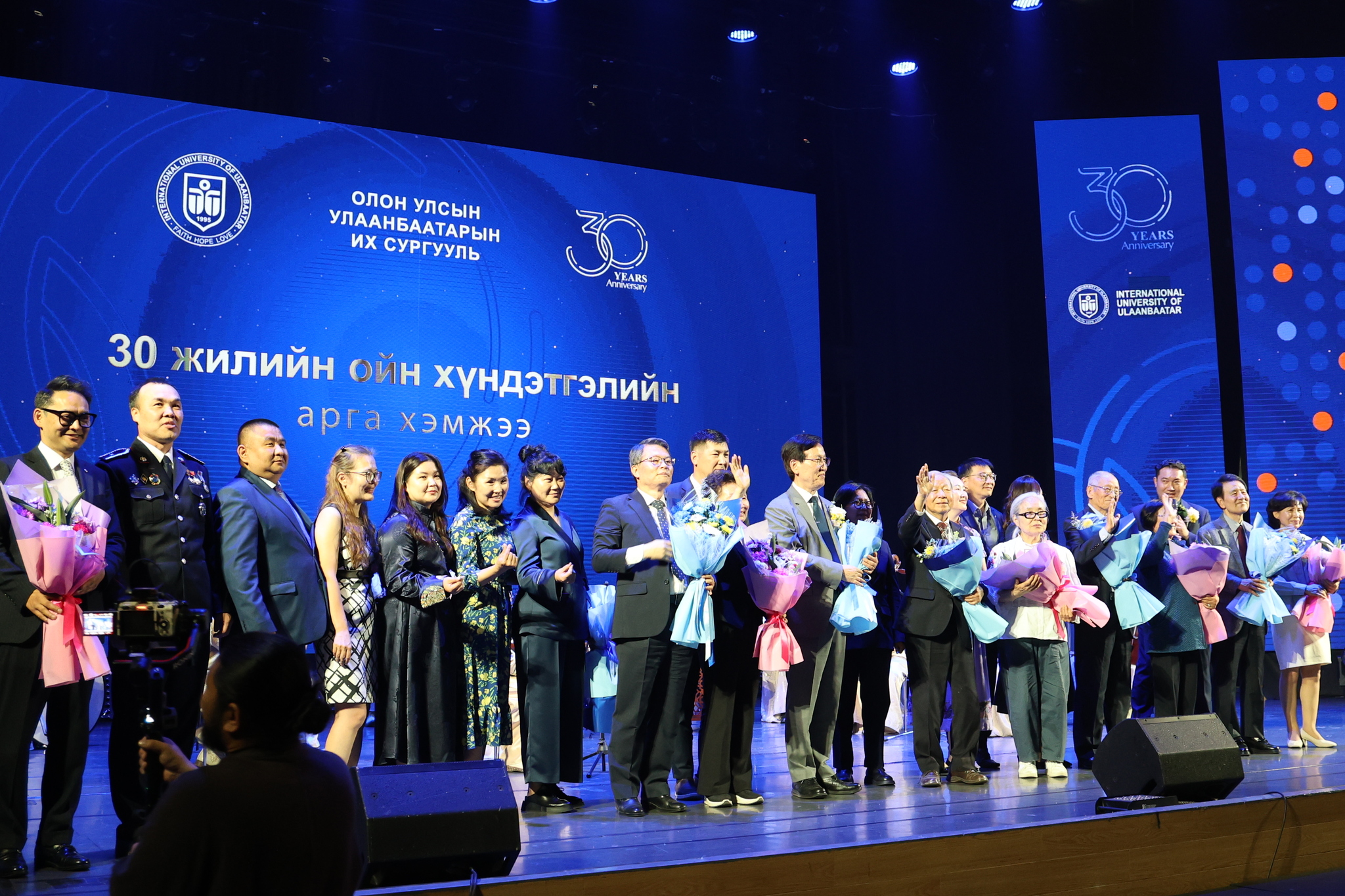 ОУУБИС-ийн 30 жилийн баярын хүндэтгэлийн арга хэмжээг 2025-06-12 өдөр Корпорэйт конвэншин центэр-т ёслол төгөлдөр сайхан тэмдэглэн өнгөрүүллээ. Энэхүү арга хэмжээнд ОУУБИС-ийн удирдах зөвлөлийн бүрэлдэхүүн, Монгол Улсын Боловсролын яам, Боловсролын Магадлан итгэмжлэлийн Үндэсний зөвлөл, БНСУ-аас Монгол Улсад Суугаа элчин сайдын яам, Монгол Улсын их сургууль, Монгол улсын Шинжлэх ухааны академи, ОУУБИС-ийн үе үеийн бүх захирлууд гэр бүлийн хамт, ОУУБИС-д ажиллаж байсан нийт багш, ажилчид, төгссөн төгсөгчдийн төлөөлөл, ОУУБИС-ийн оюутны холбоо, Монгол улсын бусад их дээд сургуулийн төлөөлөл зэрэг 1000 гаруй хүн оролцосон арга хэмжээ боллоо. Энэхүү арга хэмжээнд ОУУБИС-ийн хүндэт доктор цолыг ОУУБИС-ийн хөгжил цэцэглэлтэд хувь нэмэр оруулсан Ж.Ариунболд, Гүг Жүн Ёль нарт хүндэт доктор цолыг хадгалуулав. Мөн Монгол Улсын дээд боловсролын салбарт оруулсан үнэтэй хувь нэмрийг үнэлж Монгол улсын төрийн шагнал Алтан гадас одонгоор Хөрөнгө оруулагчдын тэргүүн И Сын тэг, мөн төрийн шагналаар ОУУБИС-ийн хөгжил цэцэглэлтэд үнэтэй хувь нэмэр оруулсан ахмад багш, одоо ажиллаж байгаа багш, ажилчдыг шагнаж урамшуулав. Мөн уг арга хэмжээний үеэр ОУУБИС-ийн Алсын хараа, эрхэм зорилгыг тунхаглан ирэх 10 жилийн стратегийн зорилтыг Ректор Кан Юу Ёль танилцуулав. Мөн өдөр ОУУБИС-ийн 30 жилийн баярын үйл ажиллагаанд хүрэлцэн ирсэн хүндэт зочид , ОУУБИС-ийн үе үеийн болон одоо ажиллаж байгаа багш, ажилчидын хүндэтгэлийн зоогийн арга хэмжээ боллоо.