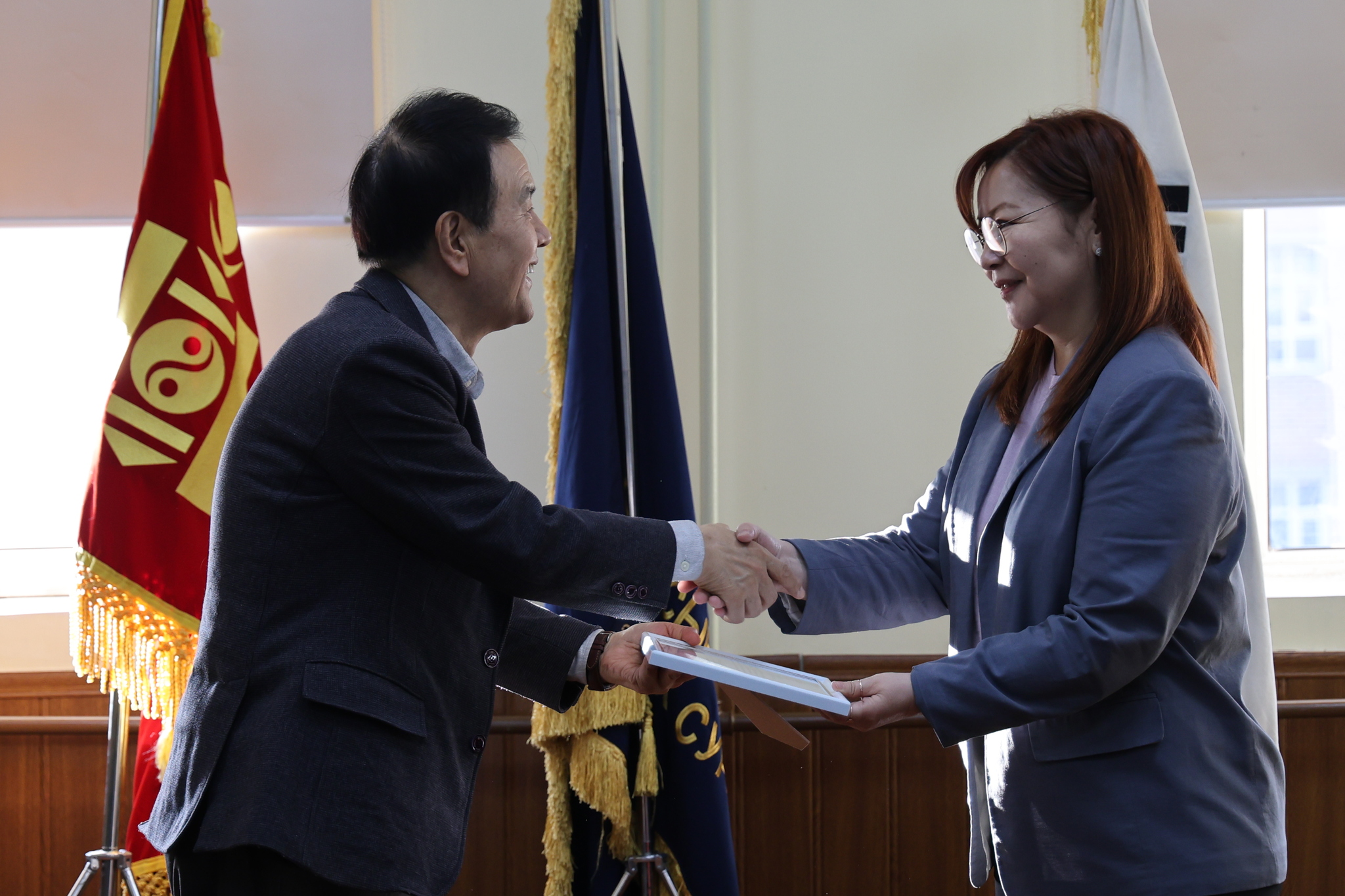 Монгол Улсын “Шинжлэх ухааны ажилтны өдөр”-ийг тохиолдуулан Сургалт, эрдэм шинжилгээ эрхэлсэн проректор, Сувилахуйн сургуулийн захирал, доктор, дэд профессор Д.Дуламсүрэн шинжлэх ухаан, судалгааны ажлын чанар, бүтээмжийг дээшлүүлэхэд оруулсан үнэтэй хувь нэмрийг нь өндрөөр үнэлэн Талархал гардуулав.