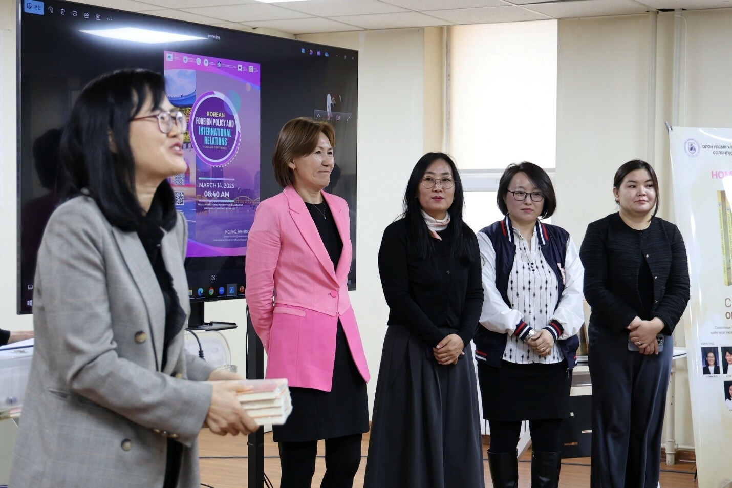 Уг төслийн хүрээнд 3 сарын 14-нд БНСУ, Монгол Улсын хооронд дипломат харилцаа тогтоосны 35 жил, ОУУБИС байгуулагдсны 30 жилийн ойд зориулан "СОЛОНГОСЫН ГАДААД БОДЛОГО БА ОЛОН УЛСЫН ХАРИЛЦАА” сэдэвт Олон Улсын Эрдэм Шинжилгээний Хурал(ОУЭШХ)-ыг ШУА-ийн Олон улс судлалын хүрээлэнтэй хамтран амжилттай зохион байгууллаа. ОУУБИС-ийн ерөнхий захирал Кан Юу Ёль, БНСУ-аас МУ-д суугаа ЭСЯ-ы элчин зөвлөх Кан Хён Чоль, ШУА-ын ОУСХ-ийн захирал Д.Золбоо нар мэндчилгээ дэвшүүллээ. Мөн МУ-аас БНСУ-д суух анхны бүрэн эрхт элчин сайд асан П.Үржинлхүндэв хоёр орны өнгөрсөн 35 жилийн харилцаа хамтын ажиллагааг дүгнэн танилцуулсан юм. Тус хуралд гадаадаас ОХУ-ын ШУА, БНСУ-ын Хангүг Гадаад судлалын их сургууль, Зүүн Хойд Азийн Түүхийн сан, Японы Рицүмэйкан ИС, БНХАУ-ын Шанхайн их сургууль, Вьетнамын Нийгмийн ШУА, дотоодоос МУИС - Олон улс судлалын тэнхим, Ази судлалын тэнхим, Зүүн Хойд Азийн аюулгүй байдал, стратеги судлалын хүрээлэн, ШУА - Олон улс судлалын хүрээлэнгээс эрдэмтэн, судлаачид оролцож хамгийн сүүлийн шинэлэг судалгааны үр дүнгээ танилцууллаа. Мөн энэ үеэр "Солонгос орон судлал" номын нээлт болж, номын ач холбогдол, агуулгыг нийтэд түгээв.